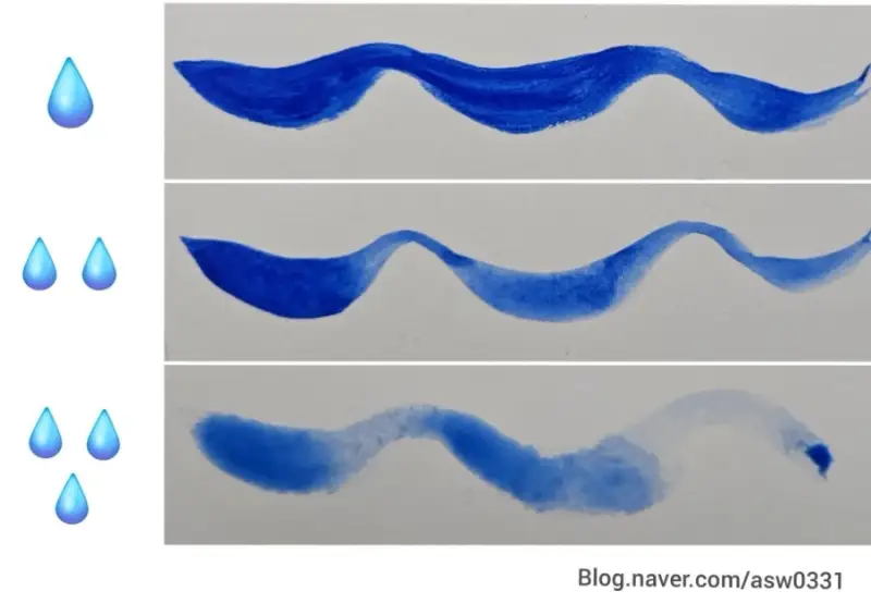 이번에는 물 사용량으로 번지는 정도를 테스트해볼게요