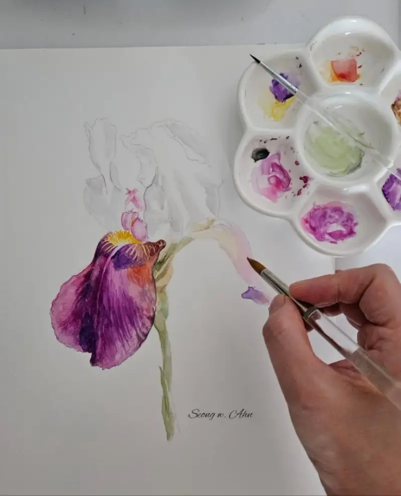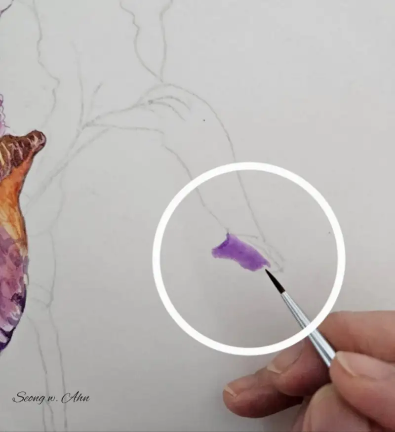이번엔 수채물감으로만 그려볼게요. 세목이니 물을 많이 사용하지는 않고 그려 보겠습니다.
