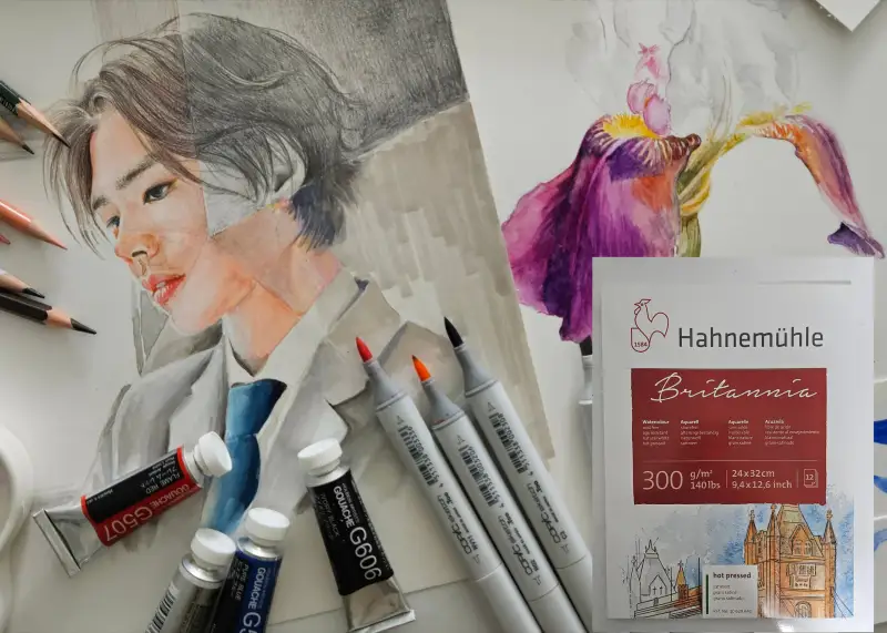2. 종이 표면이 매끈해 발색이 좋고 특히 물에 강해 수채화나 과슈 같은 습식 재료에 잘 맞다.