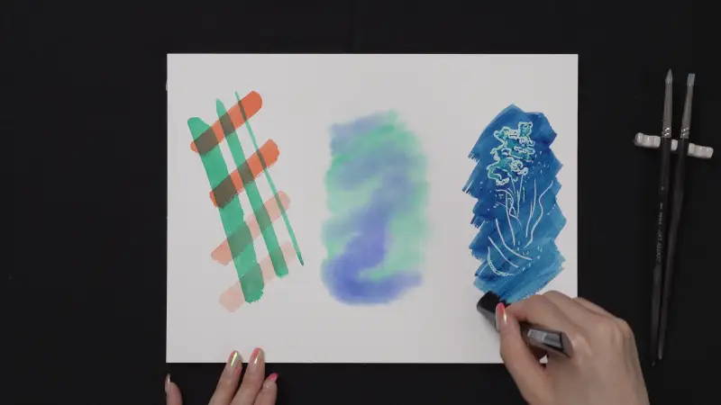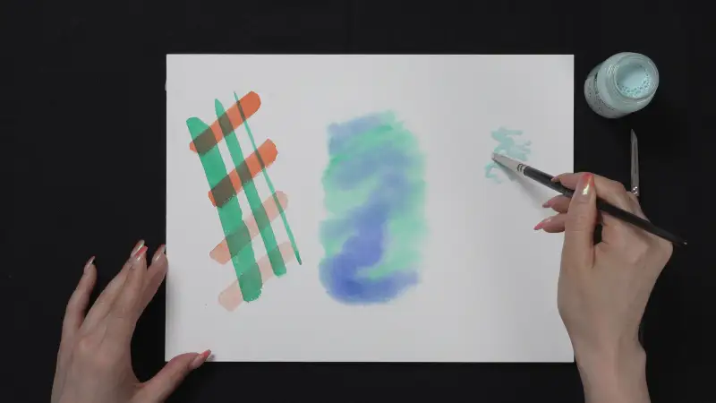 색상이 완전히 건조되고 난 뒤에 다른 컬러를 이런 식으로 칠해도 밑에 컬러가 번지는 게 아니라