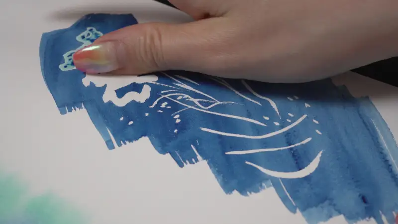 마스킹 액을 벗기기 전에는 칠한 물감이 완전히 건조된 뒤에 이렇게 벗겨 주셔야지