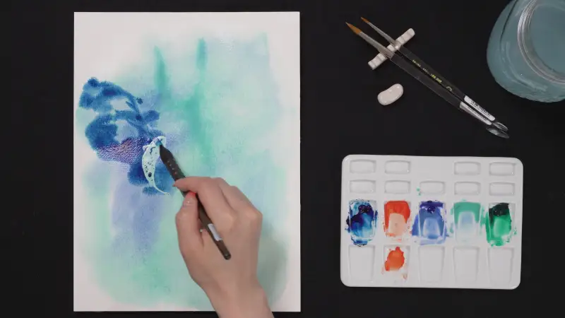 가볍게 가볍게 손이 이끄는 대로 터치를 넣어보세요 아직 종이 표면 위에 물기가 충분하기 때문에