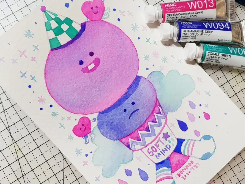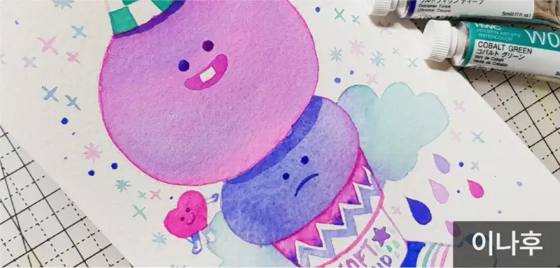 홀베인물감+블랙리세이블붓으로 귀여운 캐릭터그리기