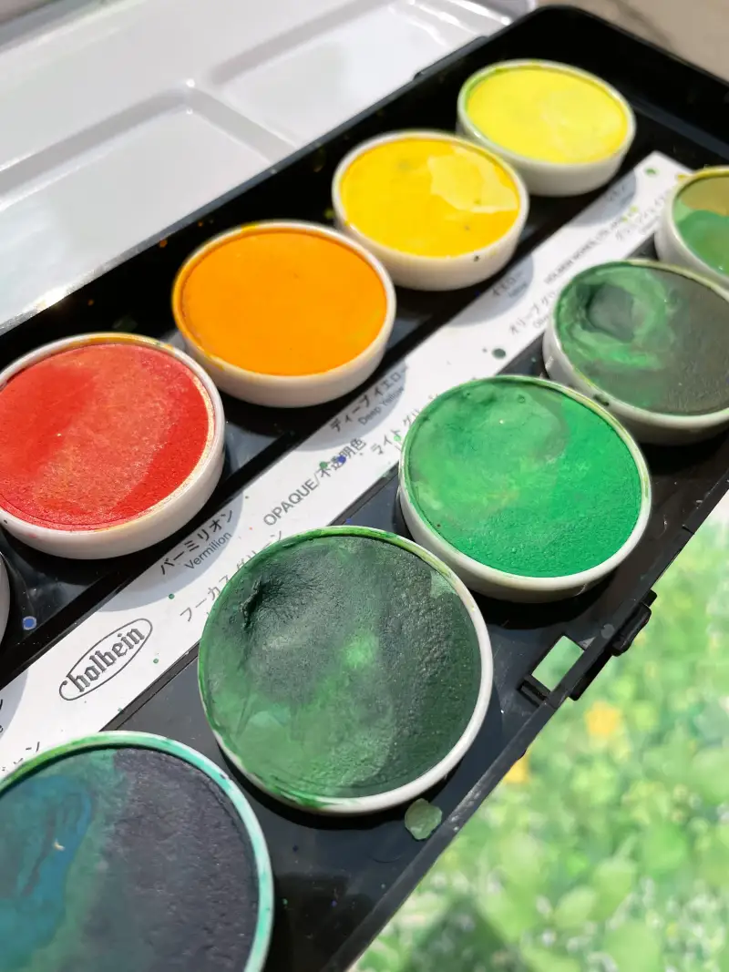 안녕하세요! 제가 8월 초에 화방넷으로 부터 받았던 물감, 홀베인 케이크 컬러스 24색(불투명) 한달 내내 사용하고 쓰는 솔직 후기 입니다.