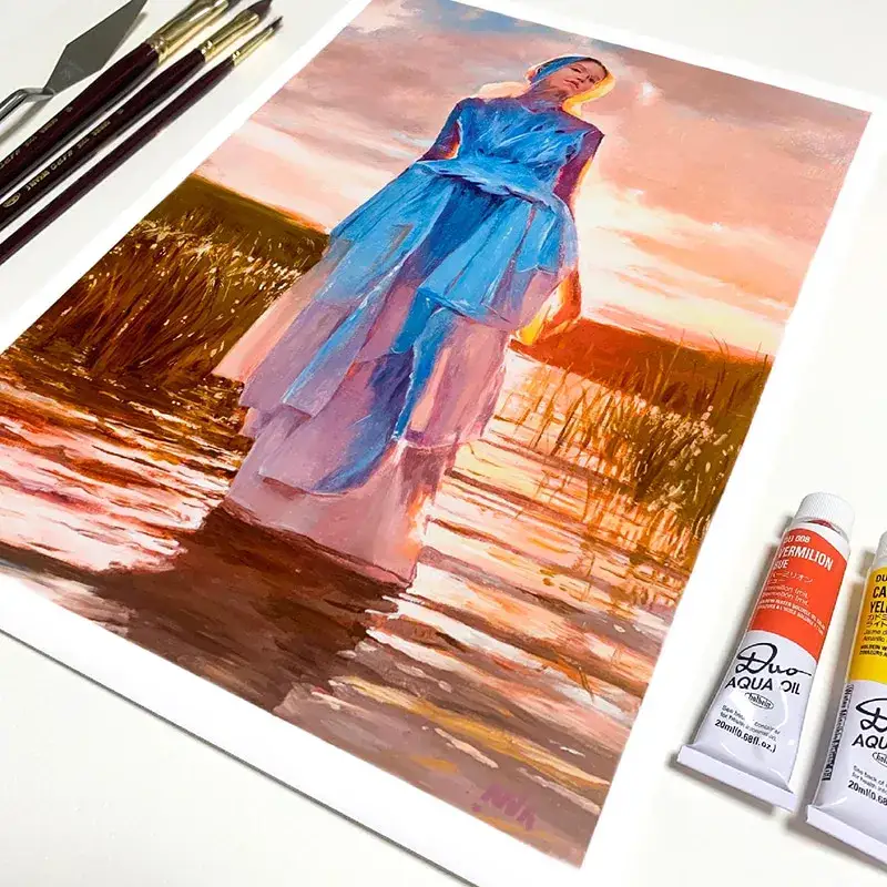 홀베인 듀오 수용성 유화물감으로 그린 노을진 풍경그리기