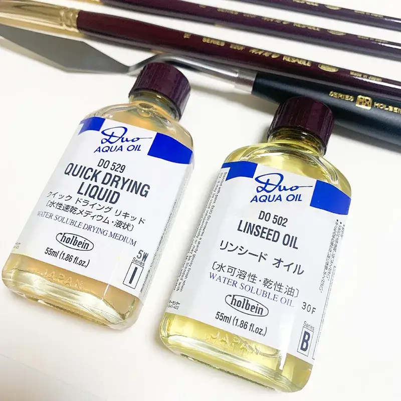 함께 제공받은 브러시와 나이프, 그리고 린시드오일/퀵드라잉리퀴드도 모두 사용감이 좋았습니다.