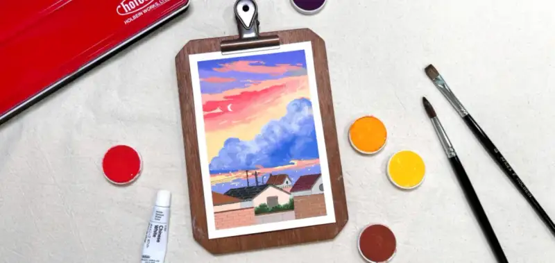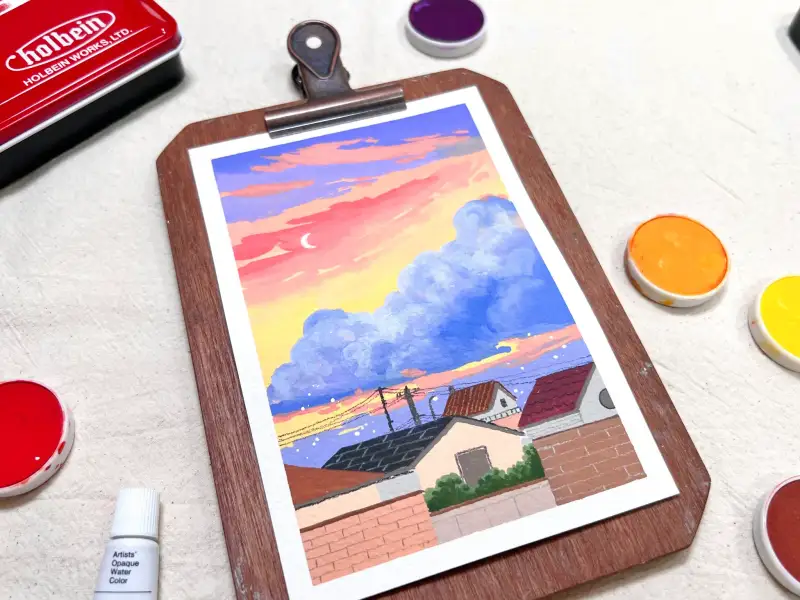 홀베인 불투명 케이크컬러, 동네의 노을 풍경