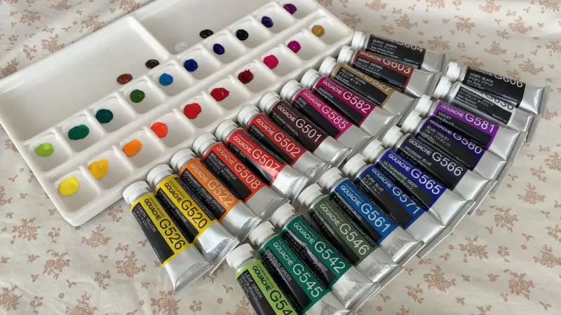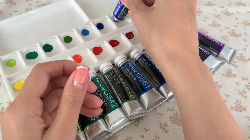 수채화 물감에 비해 불투명한 것이 특징이에요.
