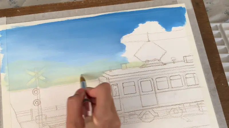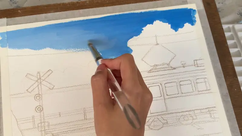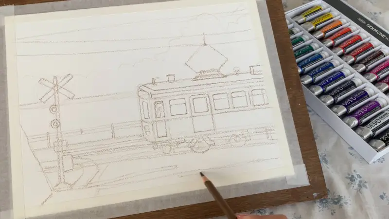 과슈로 칠할 때는 연필보다는 색연필을 사용해요.
