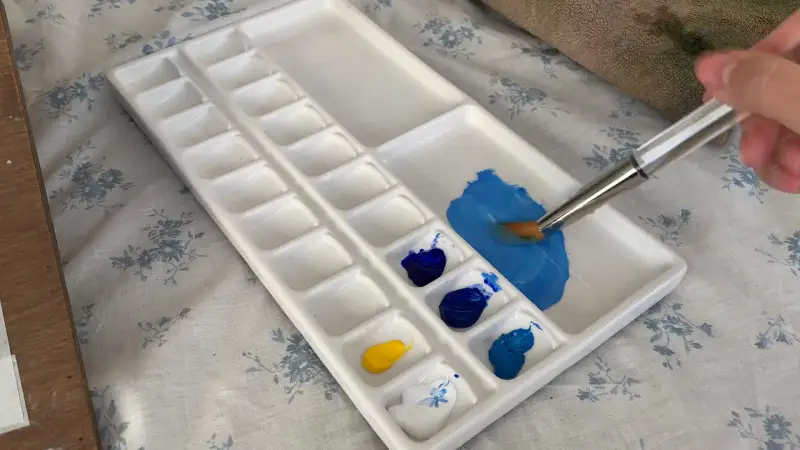 발색이 좋기 때문에 씻고 닦아내기 편한 도자기 파렛트를 준비했어요.