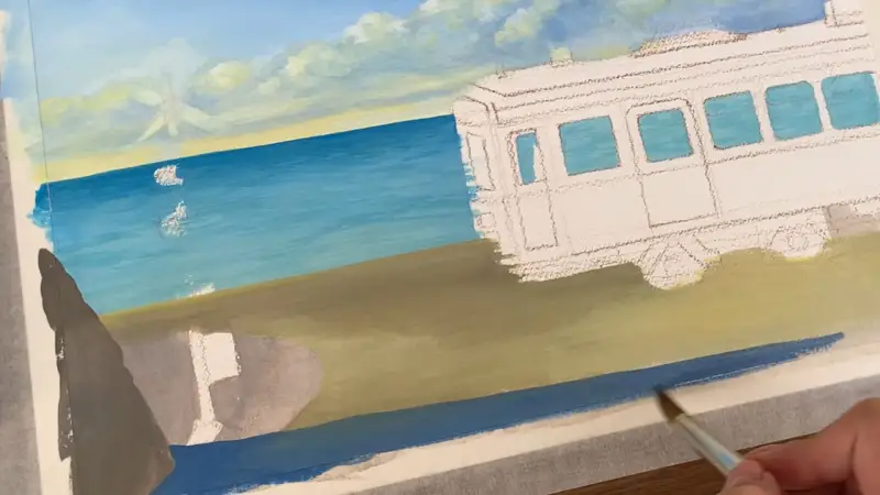 홀베인 수채과슈와 리세이블 붓으로 완성한 가마쿠라 풍경 그림이에요.