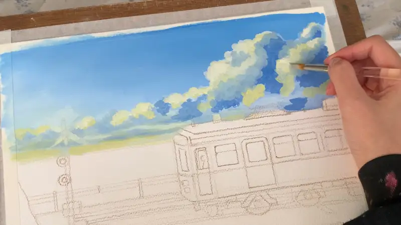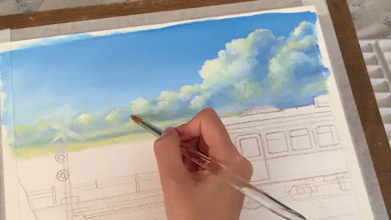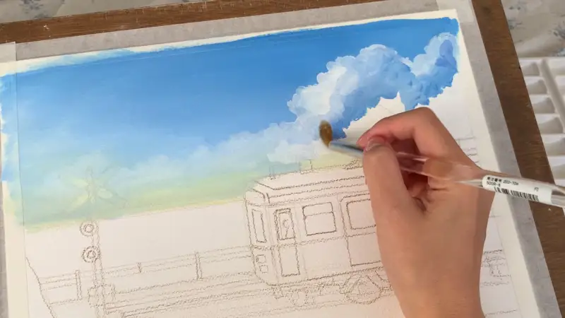 구름에도 여러 번 덧칠하며 명암을 나타내 주었어요.