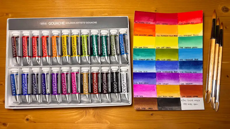 그럼 홀베인 수채과슈 24색과 리세이블 500R 붓을 사용하며 제가 느낀 점과 작업과정들을 소개할게요