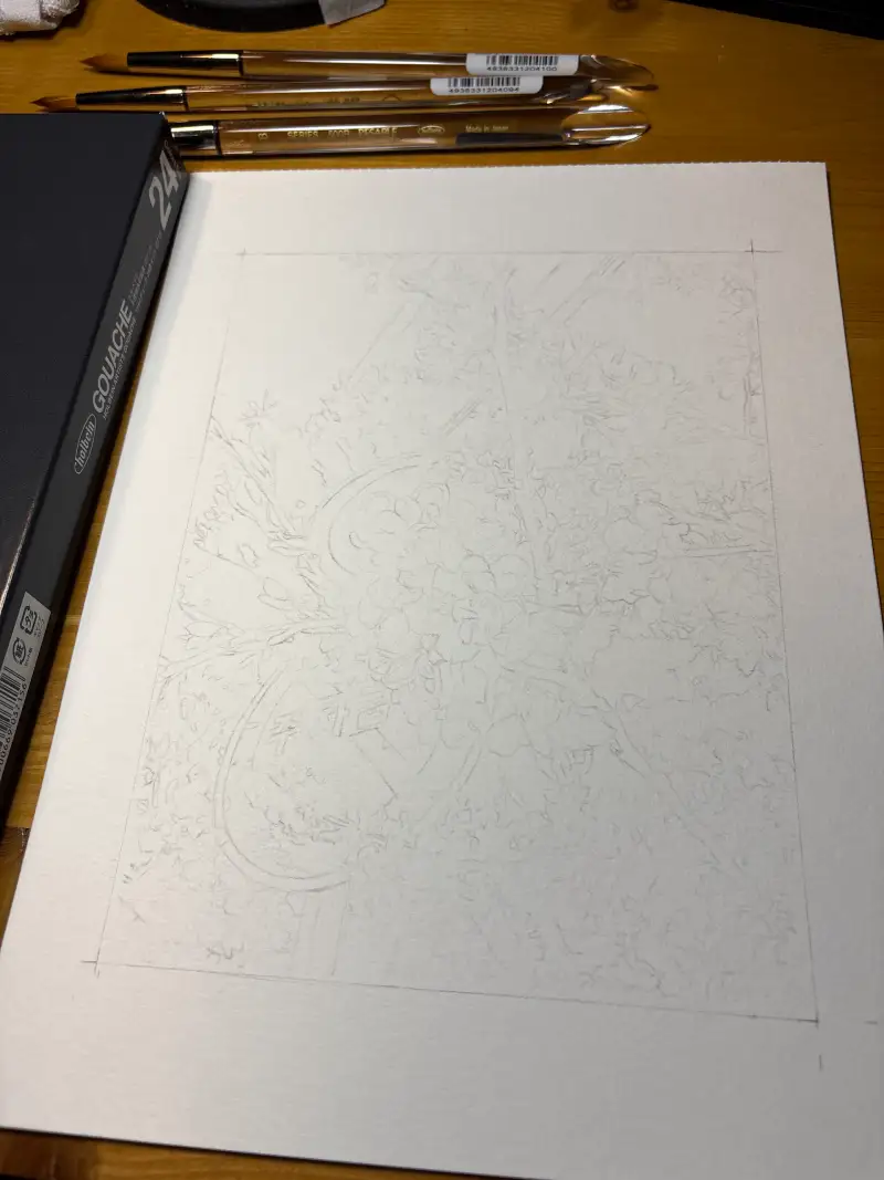 색감이 정말 쨍하고 예쁘면서 과슈이지만 수채화처럼 맑고 깨끗한 느낌을 갖고 있기 때문에 꽃이 있는 그림을 그리면 정말 잘 어울릴 것 같다는 생각이 들었고, 벚꽃잎의 얇은 두께와 오묘한 빛을 띄는 색감을 표현하고 싶었는데 조금이나마 제 의도대로 색감들이 나와줘서 결과물이 정말 만족스러웠어요..!