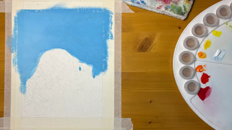 배경인 하늘을 먼저 칠해주고 그 위에 스케치를 다시한번 해주었어요