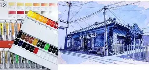 홀베인 수채물감을 사용해