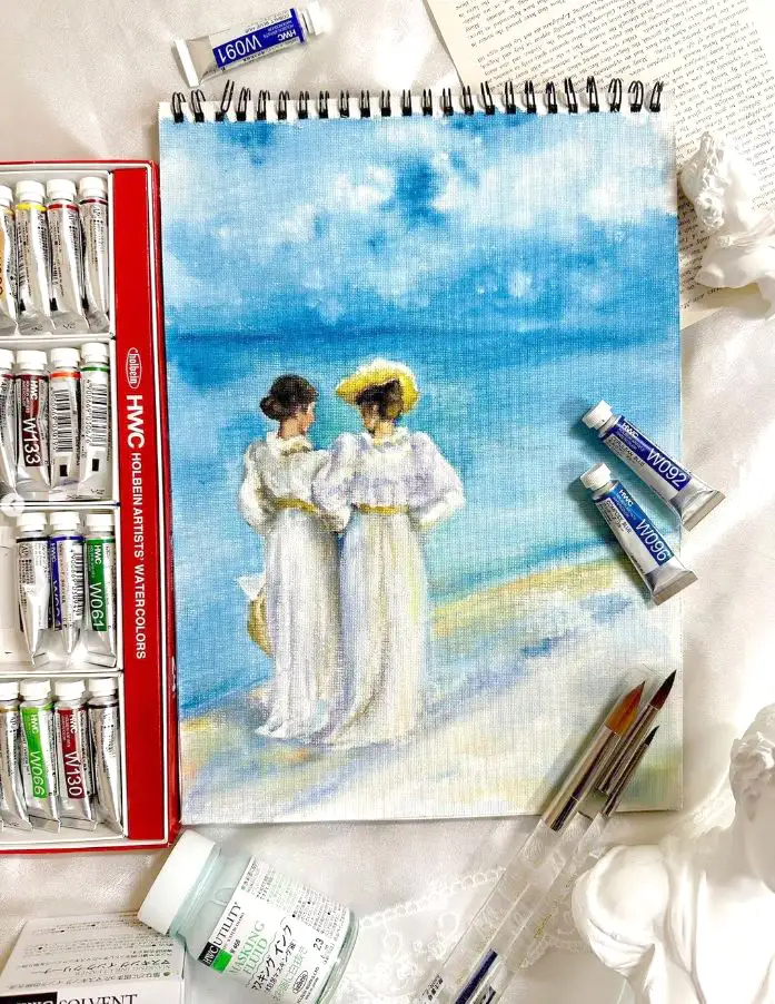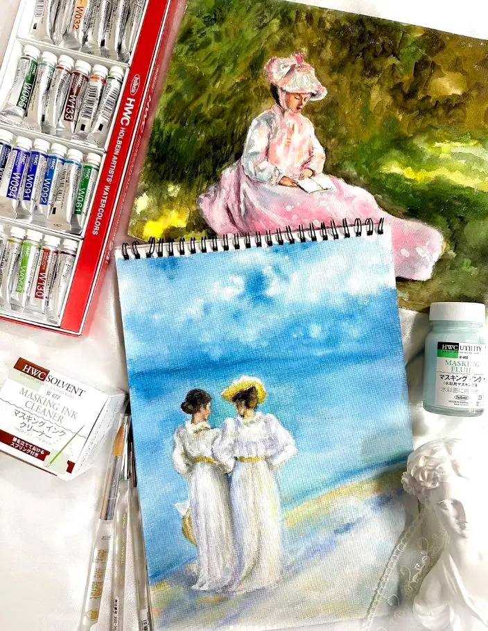 유화와 달리 홀베인 수채화만의 맑고 투명한 느낌으로