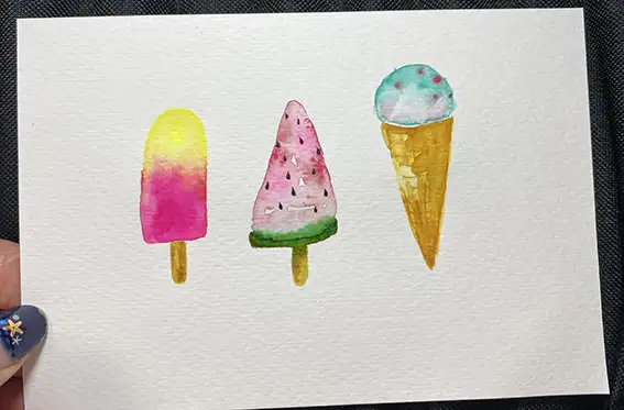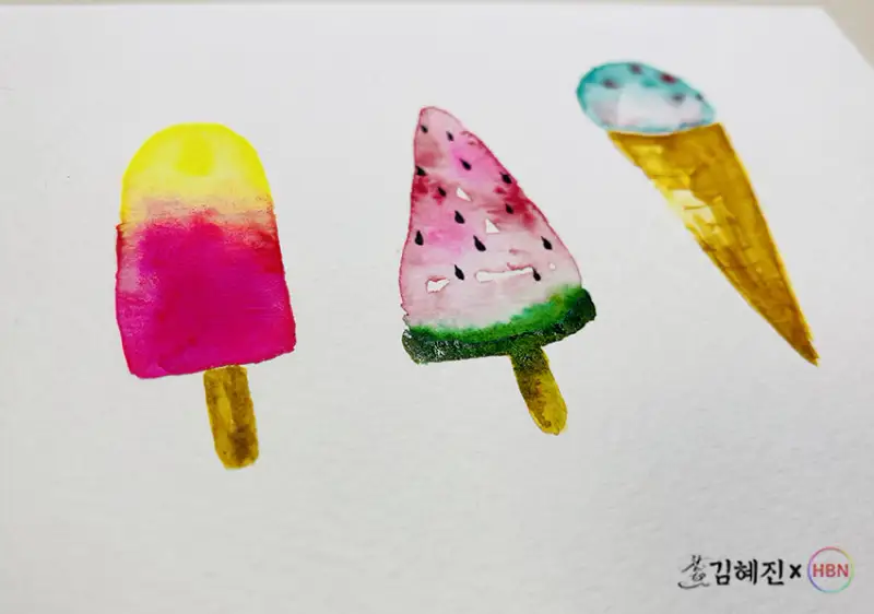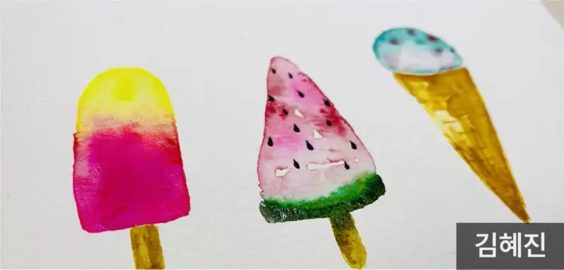 그림은 여름분위기로 상큼한 색상의 아이스크림 일러스트를 그리고