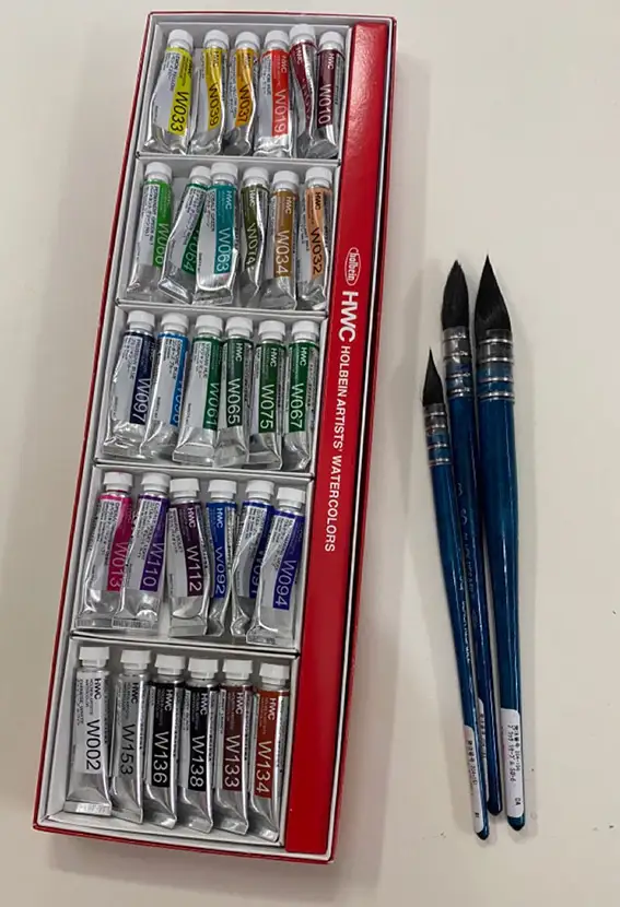 7월 화방넷페인터즈 협찬 제품은 홀베인 전문가용 수채화물감과 블랙 리세이블 붓입니다.