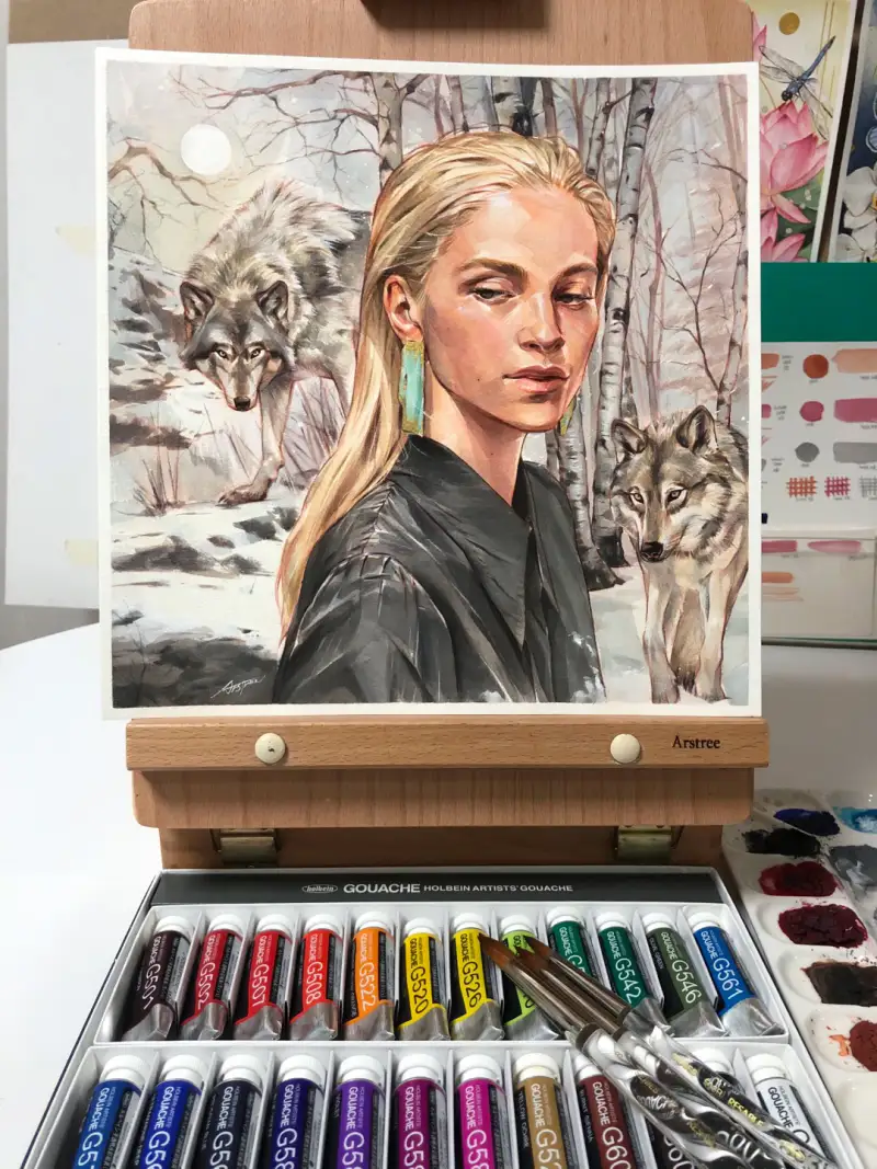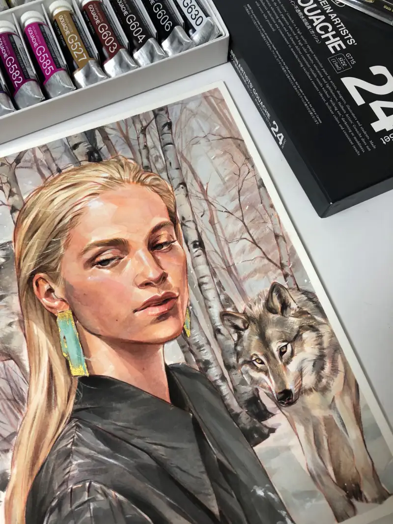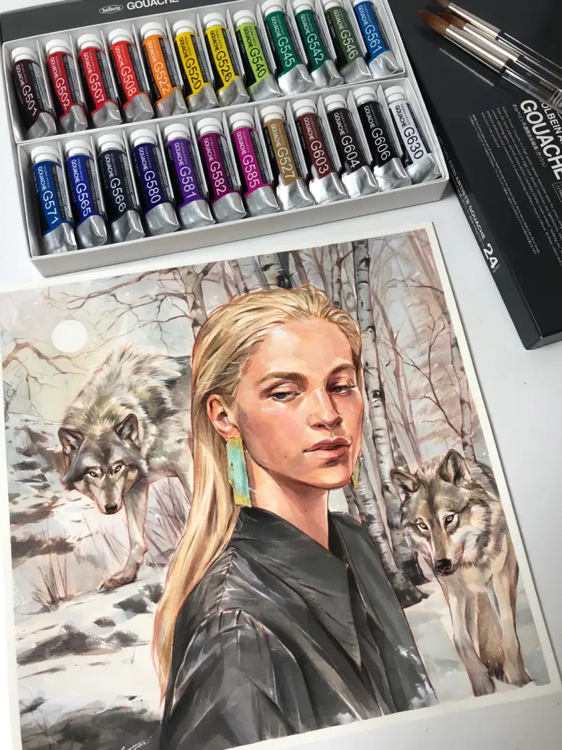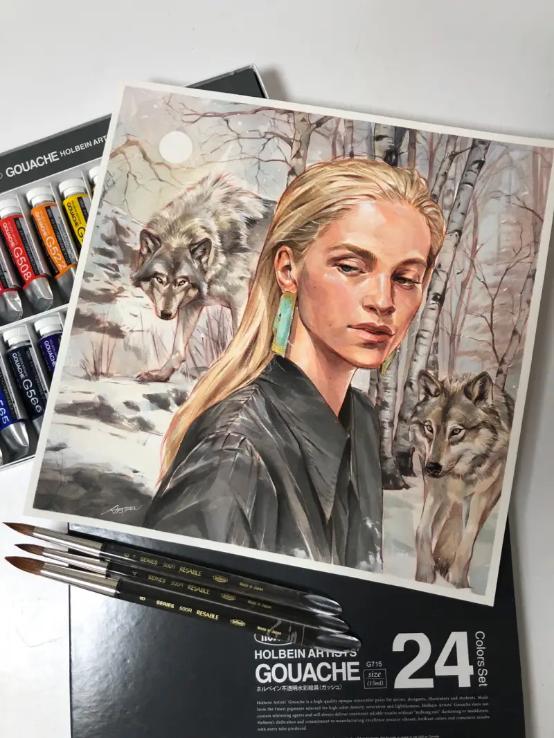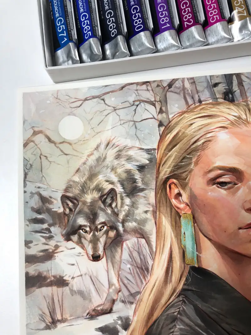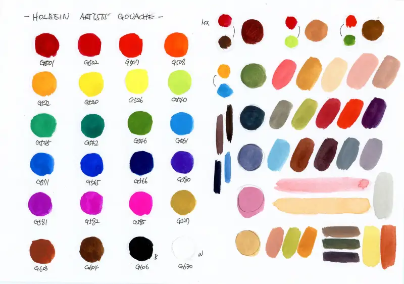 홀베인 과슈는 불투명 수채 물감으로 투명 수채 물감에 비해 안료 농도가 높고