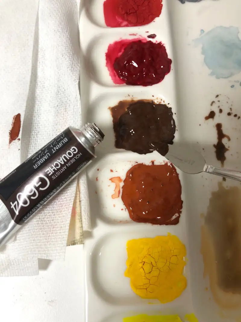 저는 과슈를 도자기 팔레트에 굳혀서 사용하는 방식을 선택했어요.