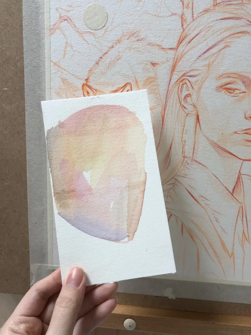 스케치를 끝내고 그림에 사용할 종이를 작게 잘라 테스트 해보았어요.