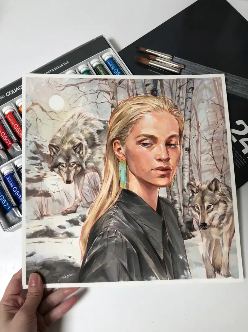 번트엄버, 옐로오우커를 사용해 중간톤에 활용해 보았습니다.(늑대 털을 그릴 때 최고!)