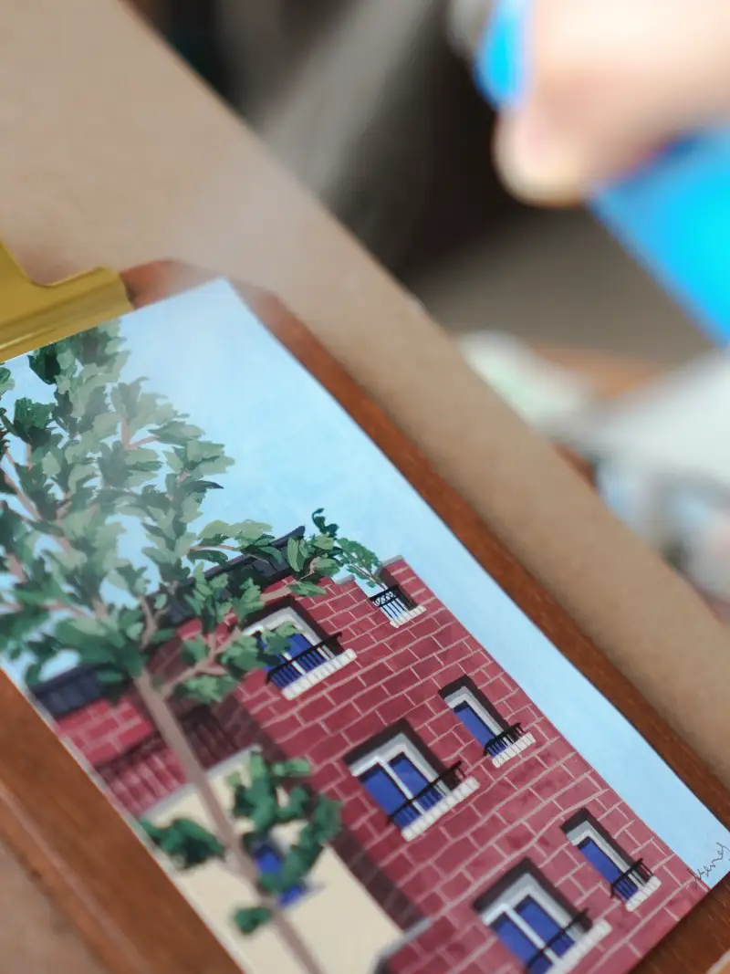 저는 불투명 수채화인 수채과슈 그림 위에 사용해 보았습니다.