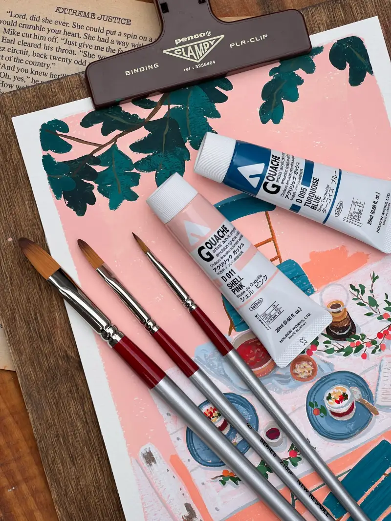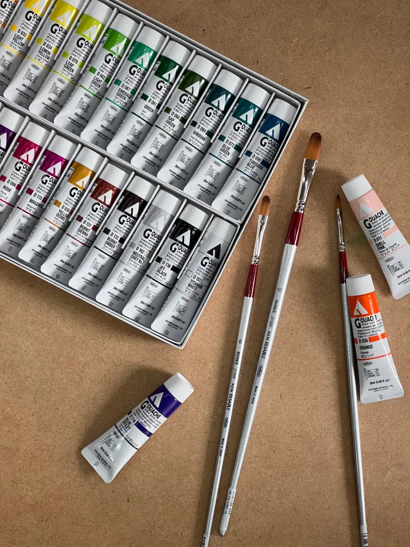 수채과슈와 아크릴물감은 접해봤지만 아크릴과슈는 사실 처음이었어요.