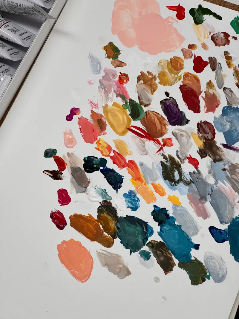 한 작품을 그리기 위해 사용된 파레트사진도 남겨봤어요. 저의 물감섞는 습관이 보이네요 ㅎ