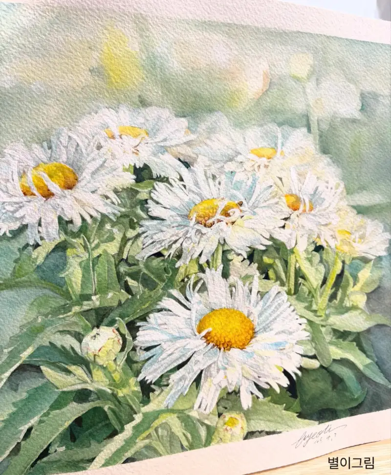✔️수채화의 맑은 그라데이션도 잘되고 물감양을 많이 해서 올리면 선명한 색을 볼 수 있어요.