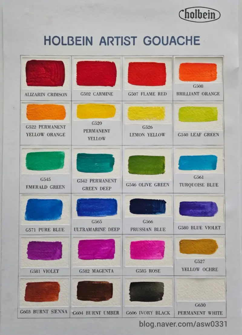 📍수채과슈는 마르면 의도한 것보다 더 어두워지니 두단계정도 밝게 칠해야 말랐을때 처음에 원했던 색을 얻을 수 있습니다.