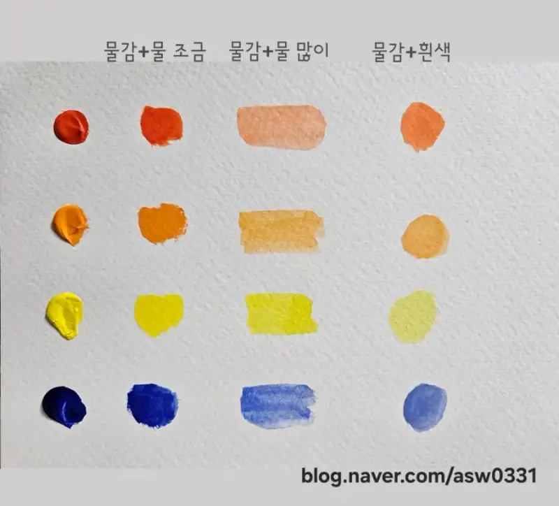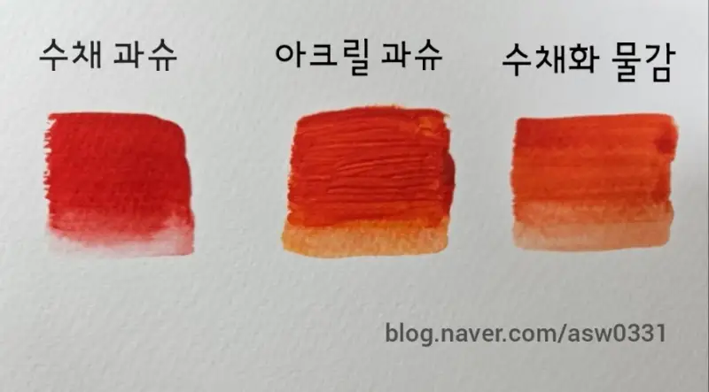 과슈의 불투명도를 아크릴과슈와 수채물감으로 비교해볼게요.