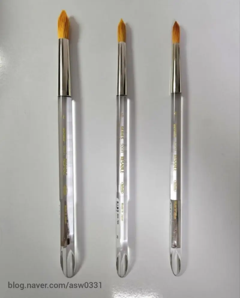 양모, 리세이블(특수가공 합성섬유모)로 만들어진 과슈와 수채화, 아크릴화 전용붓으로 붓길이가 짧아 탄력성이 좋아요.