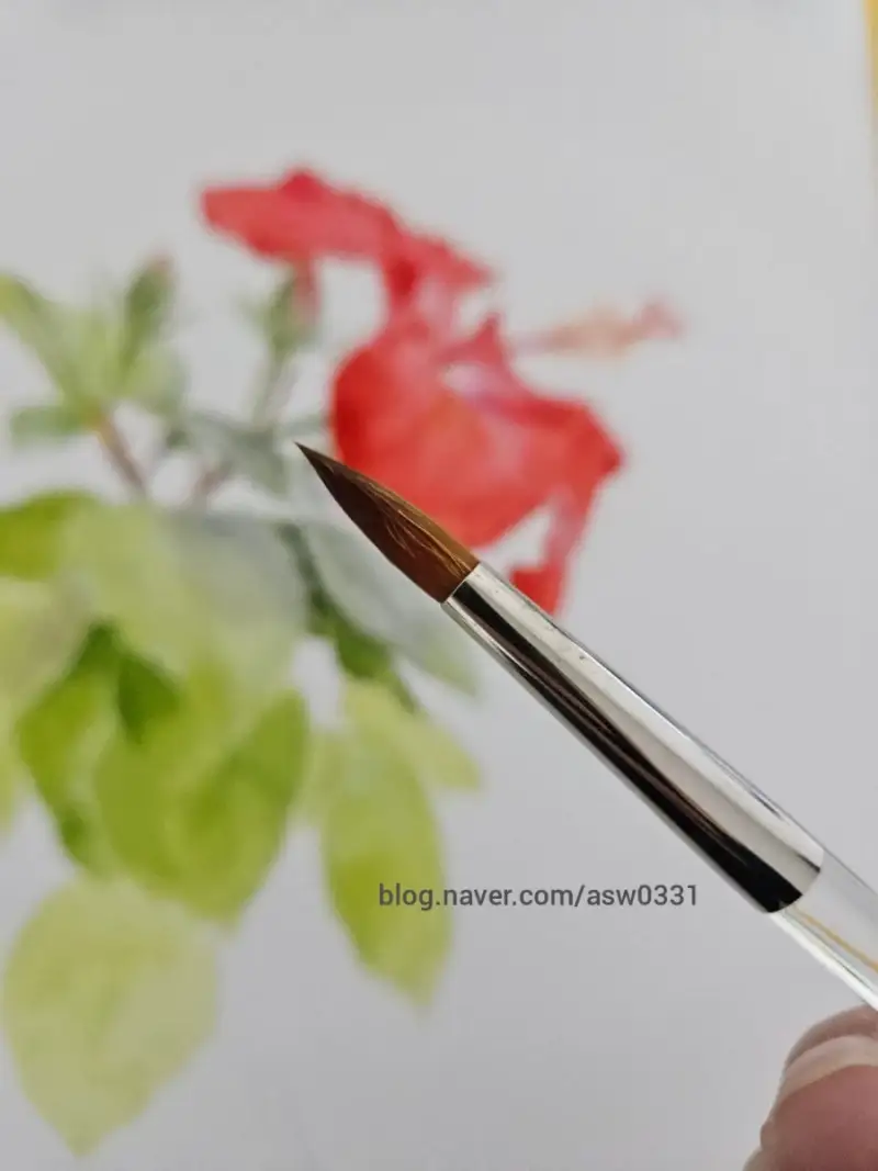 홀베인 500R 수채화 붓은 탄력있고 물칠하면 붓끝이 잘모여 크기에 비해 섬세한 표현이 아주 쉽습니다.