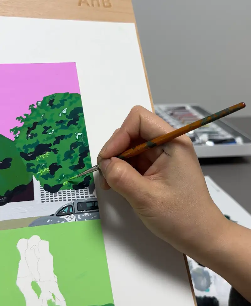 주로 집과 사람, 풍경을 소재로 그림을 그리고 있어요.