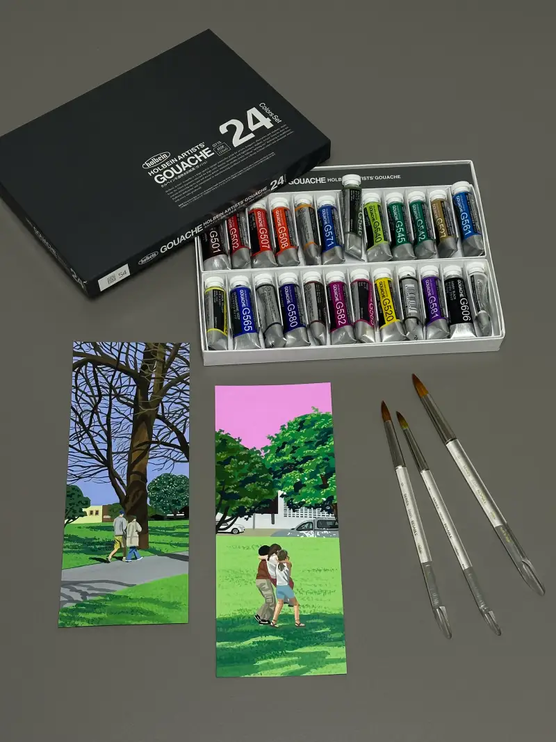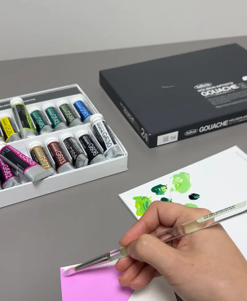 🎨 이번 작업은 홀베인 아티스트 수채화 과슈 24색 세트와 500R 붓을 사용해봤습니다.