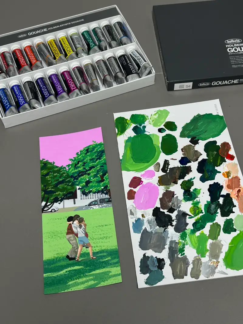 공원 풍경을 그리면서 색의 선명함과 발림감이 잘 느껴져서 즐겁게 작업할 수 있었어요.