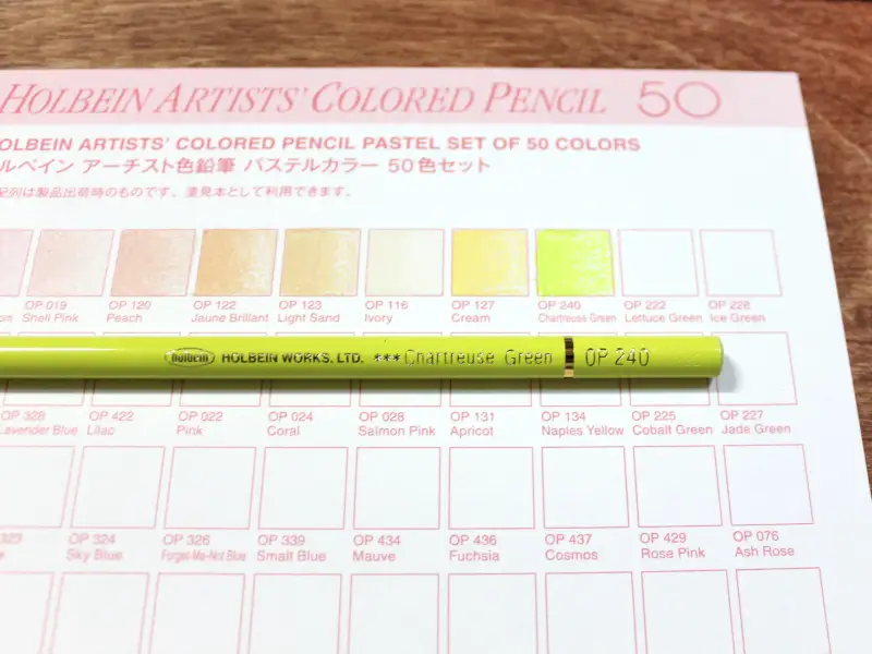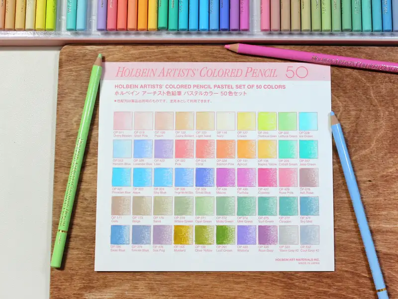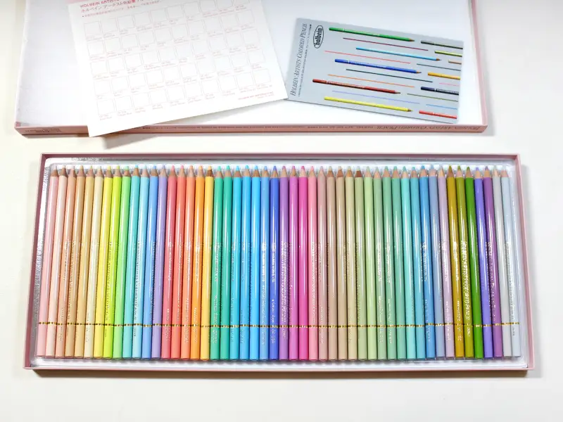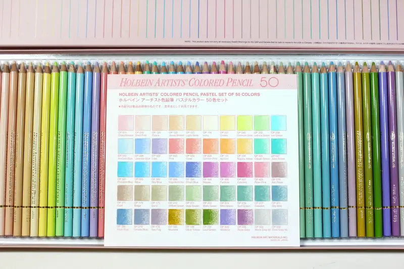 이번에 사용한 제품은 ‘홀베인 유성색연필 50색 파스텔세트’로 전 색상이 파스텔 색상으로 구성된 색연필입니다.