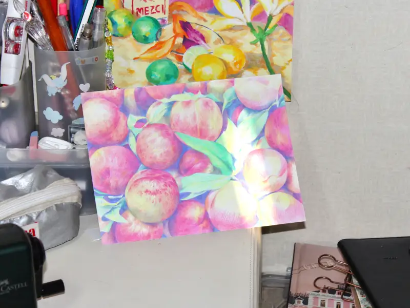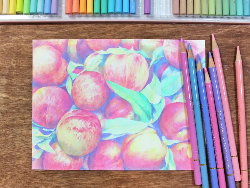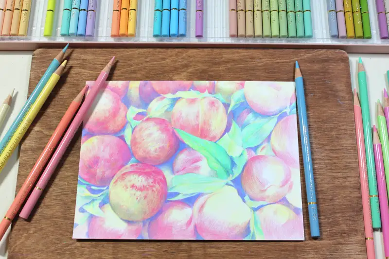 홀베인 유성색연필 파스텔세트로 복숭아 그리기 끝!
