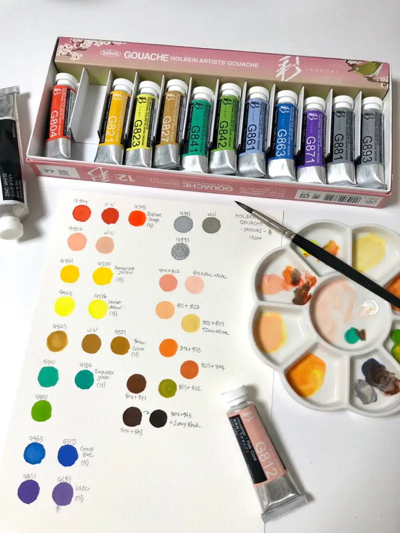 홀베인 과슈 중에서 12색 세트는 처음 사용해 보는데, 24색의 기존 컬러와 겹치지 않아서