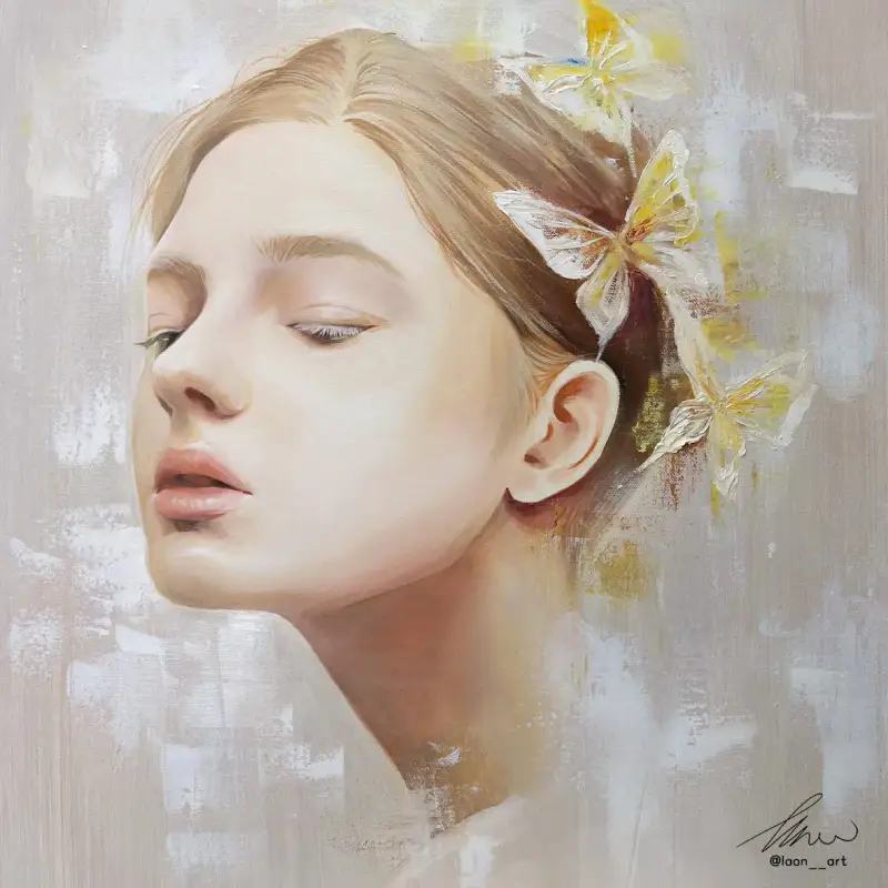 초벌작업 후 물감이 밀리지 않을 정도로 3일 정도 말리고 얼굴의 디테일들과 나이프로 나비작업을 했어요