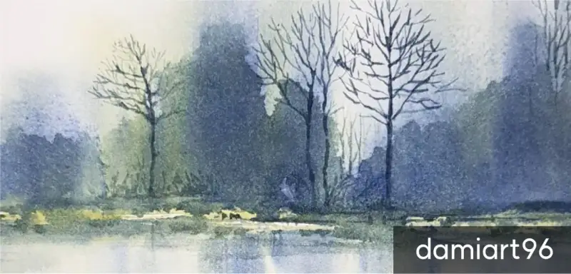 홀베인(HWC) 수채화물감으로 호수 풍경화그리기