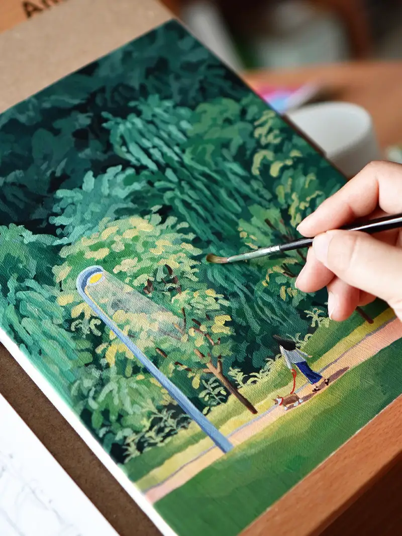 아크릴 물감의 질감과 매력에 빠져들고 있어요.🎨