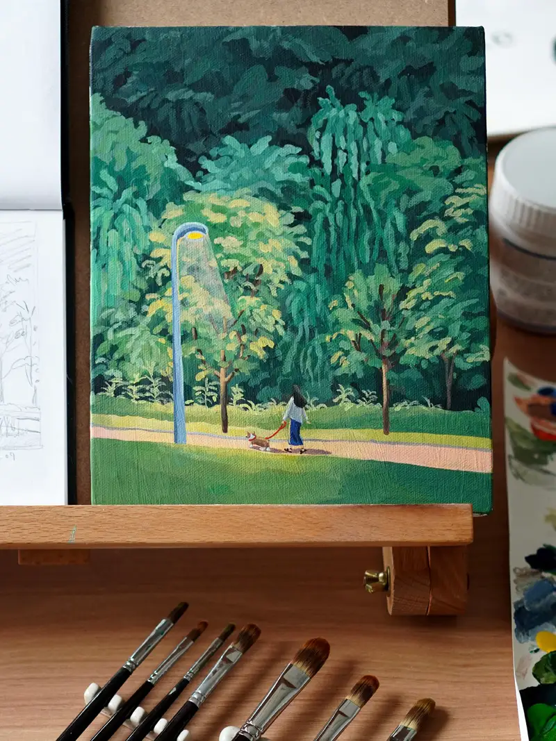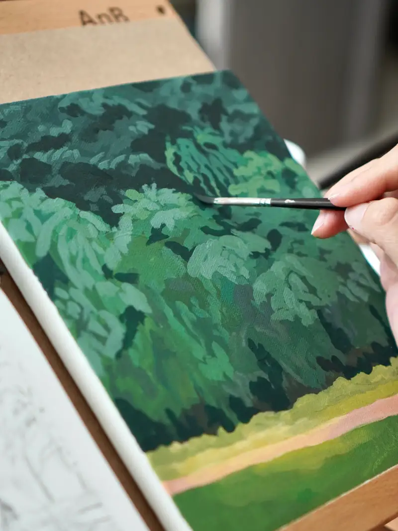 캔버스에 아크릴 물감으로 초록초록한 그림을 그려보았어요.