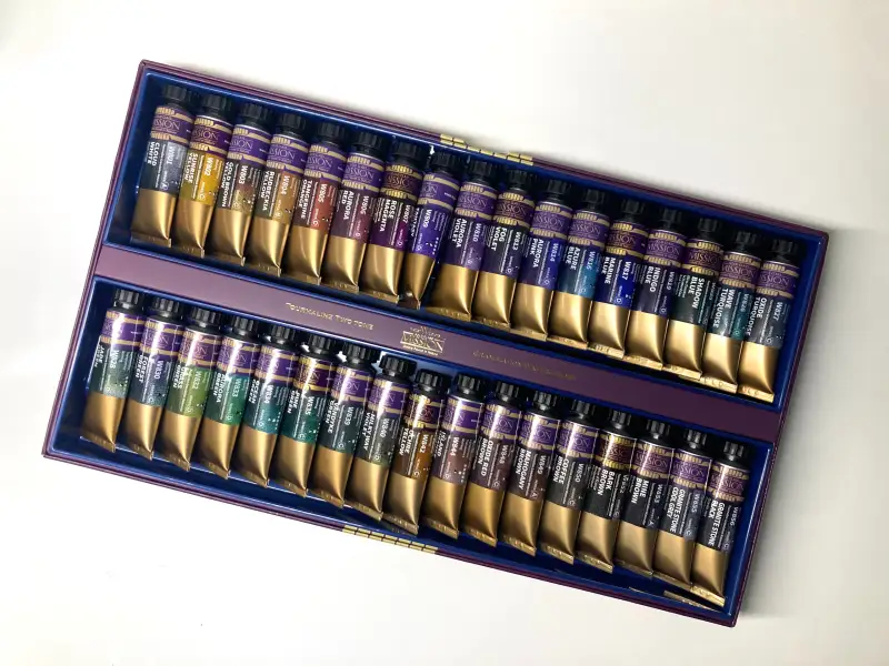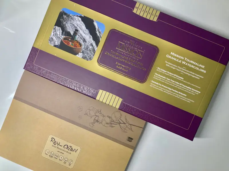 저는 그중에서 신제품인 미젤로 투톤 그래뉼레이션 수채화물감 15ml 34색 세트와 리얼코튼 아티스트 수채화용지를 사용해 보게 되었어요.