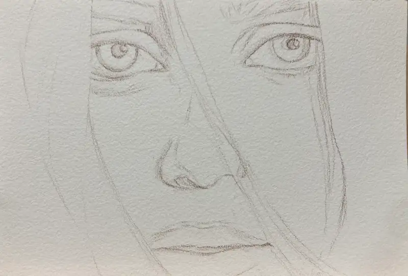 ⭐️ 팁을 드리자면 선을 다 이어서 스케치를 하기 보다, 형태를 포인트만 잡아준다는 느낌으로 선의 간격을 띄어 스케치를 해주면 연필선을 최소화해서 작업할 수 있습니다.