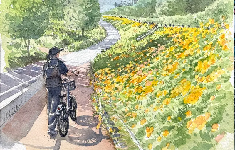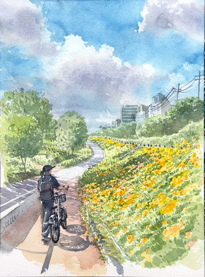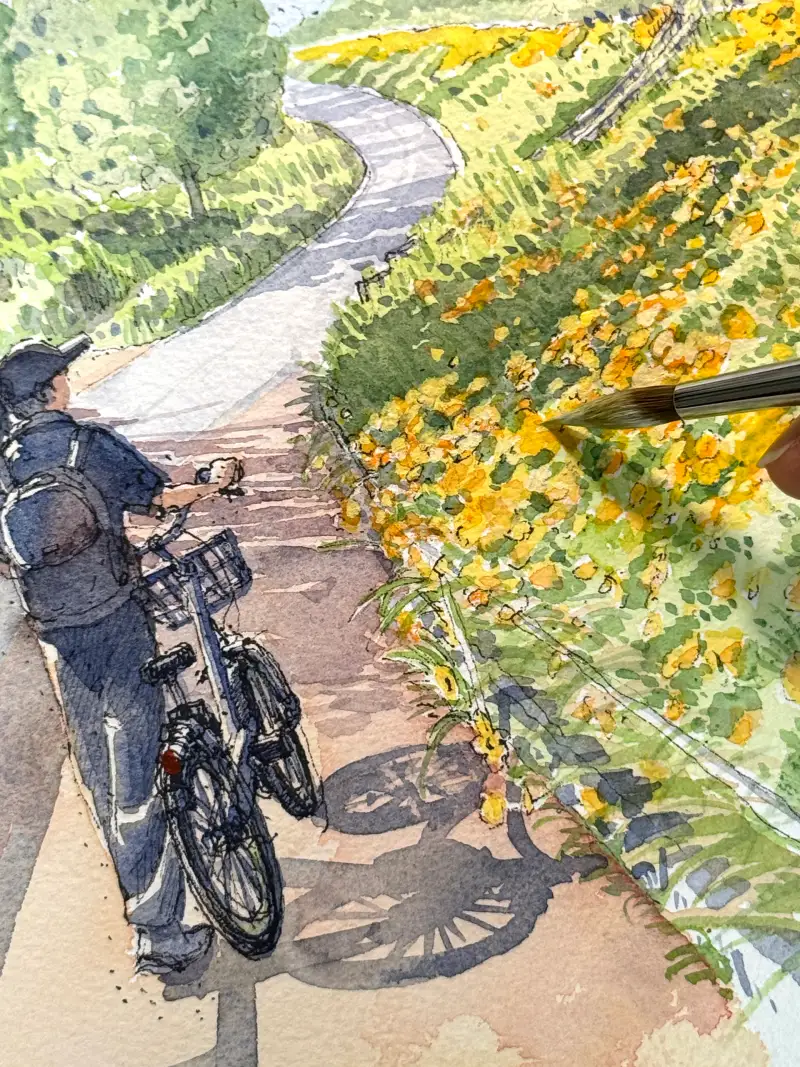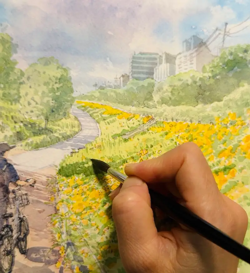 ๊ธ๊ณ๊ตญ ๊ฝ๋ฐญ์ ๋๋ฆฌ์์ง ์๋ฆ๋๋ฆฌ ๋๋ฌด์ ๊ทธ๋ฆผ์๋ฅผ ๊ทธ๋ ค์ค๋๋ค.