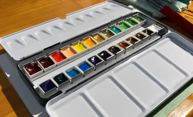 휴대성이 편리한 문교 고체물감 빈 케이스 팔레트와 빈 케이스 조합으로