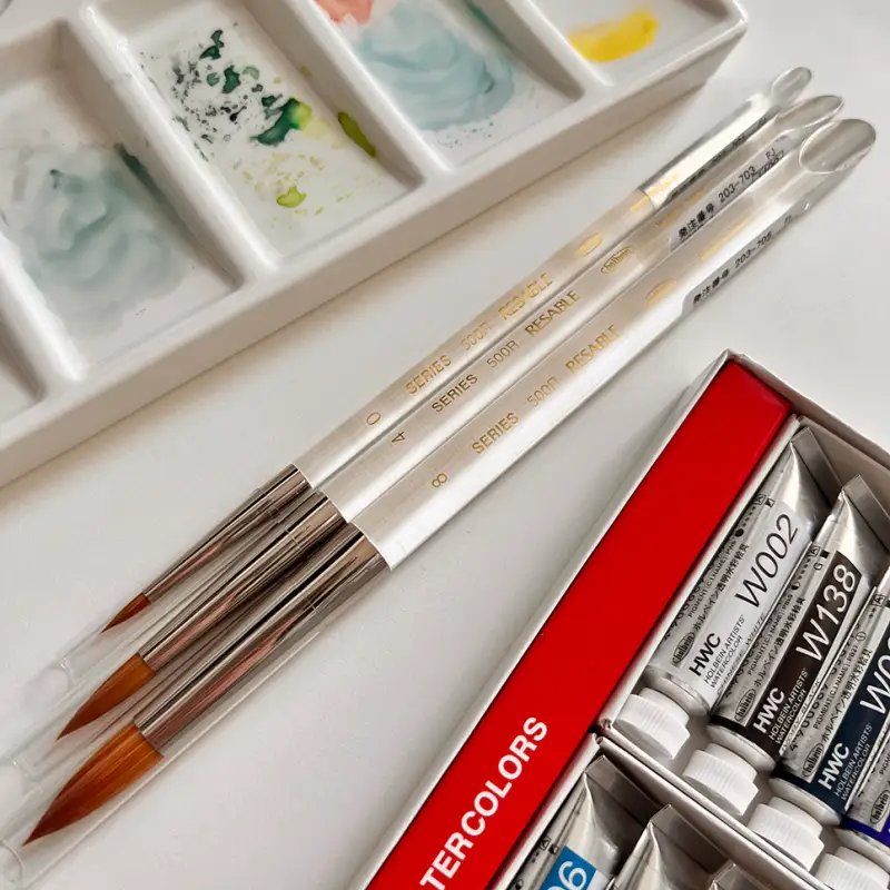500R 시리즈 붓은 굉장히 오동통하고 묵직한 그립의 붓이었는데 붓모가 탄력있고 끝이 잘 모아져